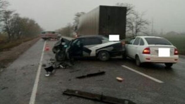 В массовом дорожно‐транспортном происшествии с участием четырех автомобилей погиб водитель мотоцикла "Иж", передает телеканал "360". Авария произошла в среду 8 ноября рано утром на дороге "Кочубей-Минеральные Воды" с четырьмя автомобилями: грузовиком Volvo, отечественными "ВАЗ-2104" и LADA Priora, а также иномаркой BMW. Как удалось выяснить, из-за неисправности тормозной системы водитель грузовика был вынужден остановиться на дороге. Водитель за рулем BMW, пытаясь объехать транспортное средство, не убедился в безопасности маневра и столкнулся с мотоциклом, после чего отлетел в проезжающий автомобиль Priora. 34-летний водитель иномарки был доставлен в больницу с переломом ноги. У всех участников ДТП взяли кровь на установление алкогольного опьянения. В настоящий момент сотрудники правоохранительных органов устанавливают виновника аварии.