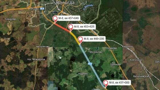 Временное ограничение режима введено на участке с 437 по 458 км федеральной дороги М-8 «Холмогоры». От кольца в створе Пошехонского шоссе до кольца на ул. Конева теперь разрешено двигаться со скоростью не больше 60 км/час. От перекрестка Конева – Окружное шоссе по трассе до поселка Надеево – до 80 км/час. Также на этом участке с 437 до 448 км не разрешается набирать скорость больше 60 км/час. «Эта вынужденная мера по организации движения принята по результатам диагностики, проведенной на данном участке трассы. В ходе анализа были выявлены дефекты и сверхдопустимая колейность. Целью введения ограничения движения является обеспечение безопасности дорожного движения на вышеуказанном участке автомобильной дороги, в особенности в зимний период», – рассказала менеджер по связям с общественностью ФКУ Упрдор «Холмогоры» Елена Москалева. Когда дефекты и коллейность устранят, не сообщается, скорее всего, это будет следующим летом. На всех участках, где ограничен скоростной режим, установлены соответствующие дорожные знаки.