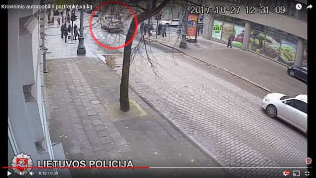 Происшествие произошло в Вильнюсе 27 октября в 12:30, однако видео происшествия было опубликовано только сейчас. На ролике, снятом на камеры наблюдения, видно, что на перекрестке улицы Якшпо и проспекта Гедиминаса белый грузовик Mercedes Benz проехал на красный сигнал светофора, сбил ребенка и скрылся с места происшествия. Полиция просит свидетелей сообщить информацию в Административный департамент Управления дорожной полиции Главной полицейской комиссии Вильнюсского уезда.