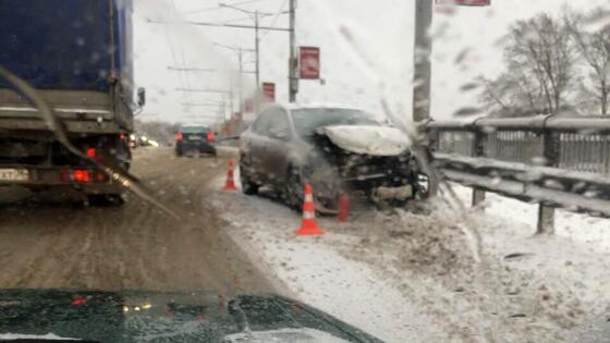 ДТП произошло сегодня около двух часов дня. «Фольксваген Поло», которым управляла девушка, въехал в отбойник, ограждающий проезжую часть от пешеходной дорожки на мосту. После этого иномарка столкнулась с отечественной легковушкой. На месте ДТП работают наряды ДПС, сообщает городской отдел ГИБДД. Госавтоинспекторы выясняют подробности и устанавливают степень вины участников ДТП. По предварительной информации, девушка-водитель не справилась с управлением.