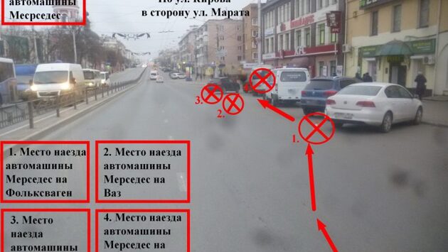 27 ноября на улице Кирова в Калуге маршрутное такси Mercedes-Benz Sprinter, ехавшее в сторону площади Победы, протаранило две стоявшие на платной парковке легковушки - Volkswagen Passat и ВАЗ 21140. Отечественную легковушку после этого отбросило на припаркованный рядом Nissan Qashqai, а микроавтобус врезался в световую опору. Фото УГИБДД по Калужской области Пострадали два человека – 53-летнй водитель маршрутки и его 20-летняя пассажирка. У девушки разбита губа, диагноз водителя уточняется. Очевидцы утверждают - ДТП произошло из-за того, что водителю стало плохо за рулем и он потерял сознание. В УГИБДД по Калужской области эту информацию пока не подтверждают.