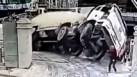 На опубликованных кадрах видно, что машина сначала завалилась на бок, затем под весом грузовик пробил перекрытия строящегося высотного здания и упал в котлован с семиметровой высоты. Водитель выжил, но покинуть кабину самостоятельно не смог, из машины его вытащили спасатели.