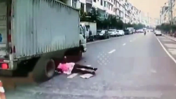 На кадрах видно, что девушка перебегала дорогу, когда заметила мчавшийся грузовик. Она пыталась остановиться, но подскользнулась и упала прямо под колеса. К счастью, водитель успел затормозить, не причинив пешеходу серьезных травм.
