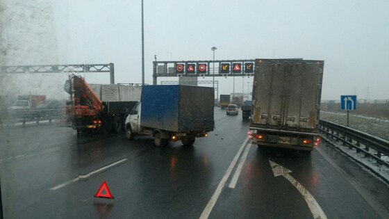 "Газель" и манипулятор создали большой затор на КАД