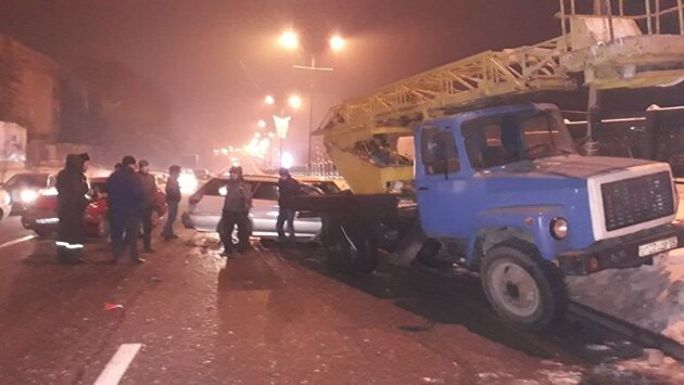 АСТАНА, 4 дек — Sputnik. Столкновение легкового автомобиля с грузовым краном-манипулятором (самопогрузчиком) произошло на Восточной объездной в Алматы, сообщили Sputnik Казахстан очевидцы. Автомобиль Subaru Legacy двигался по объездной и, не доезжая улицы Радлова, заметил стоящий на проезжей части грузовик, с помощью которого украшали город. Водитель начал перестаиваться вправо, где в этот момент ехала автомашина Toyota Carina E. Не успев среагировать на маневр, Toyota врезалась в Subaru, отчего ту развернуло и откинуло на манипулятор. В результате дорожной аварии пострадали три человек. Водитель Legacy был осмотрен медиками и отпущен, а водитель и пассажир Carina E госпитализированы. Подобное ДТП произошло в Алматы три дня назад. Тогда Toyota Camry (XV50) на большой скорости врезалась в манипулятор, в результате чего сильно пострадали находящиеся в автомобиле водитель и пассажир.