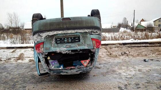 Протаранив дорожное ограждение, иномарка опрокинулась в Череповце