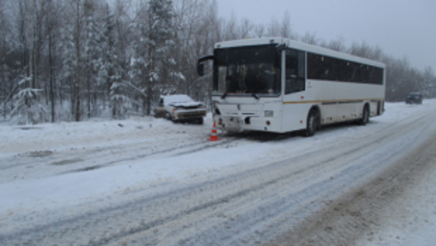 ВАЗ-21154 врезался в автобус, пострадали водитель и пассажирка легковушки