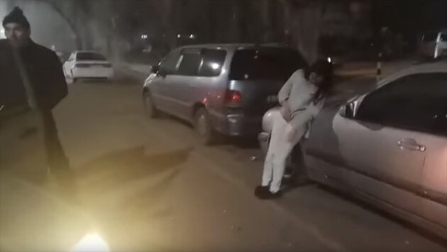 Автомобиль марки Ford с госномером 01 192 АСD врезался в припаркованный Mersedes, который от удара повредил стоящий перед ним автомобиль марки Honda Odyssey. Видео происшествия выложили активисты на канал Youtube. На ролике видно, как возле поврежденных машин стоит изрядно выпившая девушка, а вторая что-то ищет в автомобиле, на котором совершили ДТП. Через некоторое время пьяная девушка, потеряв равновесие, падает между машинами. В пресс-службе УОБДД ГУВД Бишкека факт ДТП подтвердили. "Авария произошла вчера, 13 декабря, в 23.20. О ней сообщили очевидцы, которые и рассказали приехавшему наряду подробности. Ford двигался по улице Жукеева-Пудовкина в северном направлении и врезался в припаркованный Mersedes. Водитель и девушка-пассажир скрылись в неизвестном направлении, бросив машину", — рассказали в милиции. Все три авто находятся на штрафной стоянке УОБДД. Милиция ищет водителя и пассажира автомобиля марки Ford.