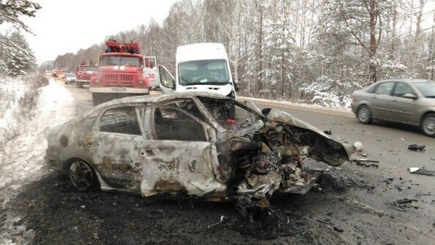 Погиб мужчина. Утром 14 декабря на 21-м километре трассы Нижний Тагил - Нижняя Салда лоб в лоб столкнулись Volkswagen Polo и фургон Ford Transit. Как сообщили "Уралинформбюро" в отделении пропаганды УГИБДД по Свердловской области, на встречную полосу выехал 58-летний водитель легковушки - он не справился с управлением. От удара Volkswagen загорелся. Виновник аварии скончался на месте. 28-летнего водителя фургона госпитализировали с переломом голени. Фото: Иван Фархиев, vk.com