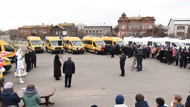 Торжественное мероприятие состоялось сегодня на территории Астраханского театра оперы и балета. Глава региона Александр Жилкин, а также министр здравоохранения Астраханской области Павел Джуваляков и министр образования и науки Виталий Гутман приняли участие в праздничном событии. В школы Ахтубинского, Володарского, Икрянинского, Камызякского, Приволжского и Черноярского районов, ШОД им. Анатолия Гужвина и СОШ №12 отправились 10 автобусов Ford. Как сообщает региональный Минобр, автомобили оборудованы всем необходимым для безопасной перевозки школьников. Еще 9 машин были приобретены для медицинских учреждений города и области. Ключи от шести УАЗов разошлись по районным больницам в Ахтубинске, Икряном, Камызяке, Володаровке, Лимане и Приволжском районе. Автомобили этой марки были выбраны не случайно – в районах зачастую имеются только грунтовые дороги, с которыми УАЗ без труда справится. Также еще три новые Газели отправятся на городскую станцию Центра медицины катастроф и скорой медицинской помощи в Астрахани. Все автомобили были приобретены за счет федеральных средств.