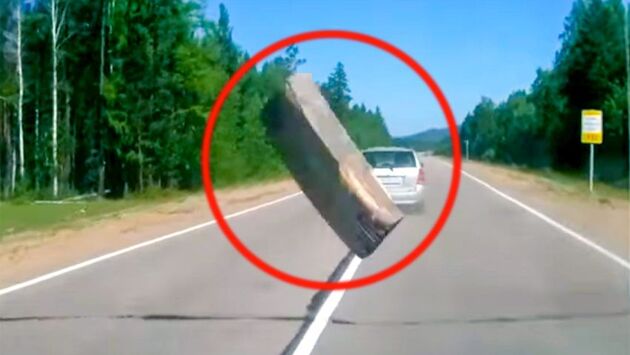 Автор ролика двигался за легковушкой, когда та наехала на брус. Вылетевший из-под колес автомобиля предмет отскочил в сторону и разбил стекло его машины. К счастью, никто не пострадал. Судиться за компенсацию автору ролика не пришлось. Виновником происшествия признали ехавший перед ним автомобиль, и его страховой компании пришлось возместить ущерб за причиненные повреждения.