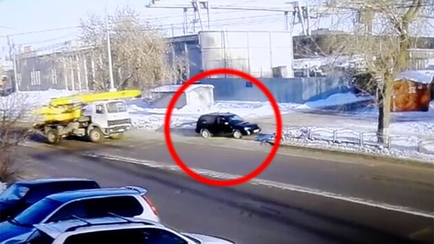 Водитель Subaru уже набрал скорость и не смог остановиться. После этого и случился феноменальный прыжок.