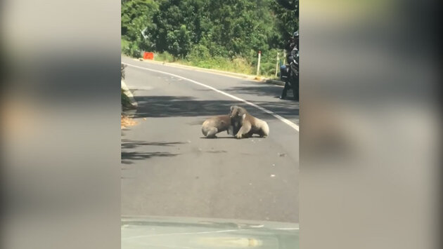 Коалы подрались посреди трассы, а водители их ждали, — забавное видео