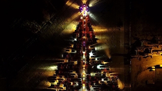 Калининградские автомобилисты составили елку из 270 машин, причем звезду на ее верхушке выложили из полицейских авто. Об этом рассказали в Госавтоинспекции региона. Подготовительная работа к флешмобу шла почти три часа. Когда гигантская елка была готова, полицейский Дед Мороз поздравил автомобилистов с наступающим Новым годом и пожелал безопасных дорог. На словах «Елочка, зажгись!» все автомобили включили фары и «аварийки». Елка в Калининграде стала самой большой «автоелкой в России. Прежний рекорд принадлежал автомобилистам в Хабаровске, они использовади 97 машин. До этого новогоднее дерево составили водители Челябинска, сложив елочкой 80 авто.