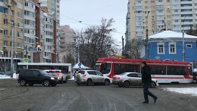 На перекрестке пр. Ленина и ул. Полевой затруднено движение из-за ДТП с трамваем и автомобилем