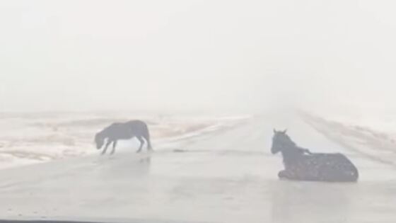 В Сети появилось видео с лошадьми, которые пытаются перейти казахстанскую трассу. Она оказалась скованна льдом и превратилась в каток. Автолюбитель снял группу лошадей, которые пытались перейти дорогу по голому льду. Перейти на другую сторону удалось не всем. Одно животное после того, как подскользнулось, осталось сидеть на дороге и смотреть на объезжающие ее машины. Группа верблюдов остановилась перед обледенелой дорогой в Казахстане, понимая, что перейти ее проблематично. Но среди них оказался молодой и нетерпеливый подросток, который решил испытать судьбу и бросился вперед. Проскользив до другого конца трассы он попытался сойти с ледяной дороги, но ноги разъехались в разные стороны. Весь инцидент снял на видеорегистратор водитель.
