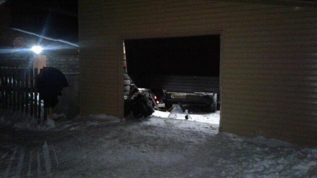 Водитель снегохода въехал в автомобиль, стоящий в гаражном боксе