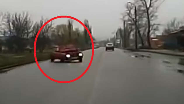 Водитель красной “Лады” выехал на встречную полосу и протаранил машину автора ролика. Главной причиной стал капот, который открылся во время движения и на некоторое время дезориентировал водителя. Тот на доли секунды потерял контроль над машиной, на скользкой дороге ее занесло, произошло столкновение. О пострадавших не сообщается.