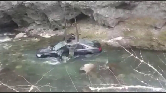 Жители Осетии сами вытаскивали упавший с обрыва в реку автомобиль Audi