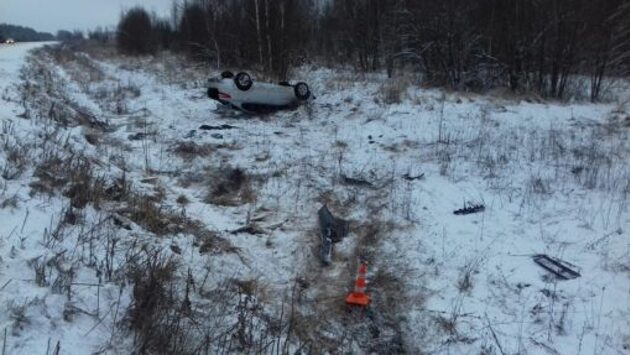 На трассе Болхов-Мценск «Киа Рио» лег на крышу