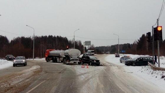 В Кирово-Чепецком районе «КАМАЗ» столкнулся с двумя иномарками