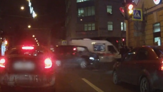 Опубликовано видео столкновения скорой помощи и Gelandewagen в Петербурге