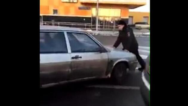 Водитель прокатил на капоте попросившего у него права столичного полицейского