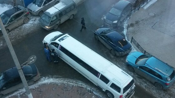 Дорогостоящий автомобиль выехал на пересечение улицы Ашхабадской и Гранитного переулка, после чего по какой-то причине прекратил движение. Фотографиями с места происшествия очевидцы поделились в соцсети 19 января. Многие пользователи сразу решили, что лимузин не смог повернуть на узкой дороге. «Бедно живем… До чего Путин страну довел! Уже лимузину негде развернуться во дворе…» — написал Евгений. «То чувство, когда забыл, что размер имеет значение», — поддержал мысль Андрей. Некоторые нижегородцы принялись шутить в адрес пассажиров и водителя габаритной иномарки. «А молодожены и гости из него на маршрутку пошли», — предположил Сергей. Валерия посмеялась: «Ой, там девушка-водитель сидела, наверное». Нашлись и те, кто попытался поспорить с мнением большинства. Например, Дмитрий заявил: «На самом деле там можно повернуть. Сложно, но можно». «Может, просто лимузин „умер“? — задалась вопросом девушка, представляющаяся именем Леночка. — Бензин закончился… А по поводу вырулить, наверное, даже я вырулю». «Ребят, да они не повернуть не могут, а ДПС остановила их. Там ГАИшник рядом стоит», — прозаично закончила дискуссию Наталья. Напомним, интим втроем за рулем иномарки привел к массовому ДТП с пострадавшими. Фото: vk.com