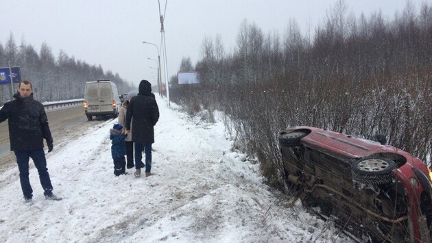 Очевидцы сообщают, что авария произошла в 11:15 во Всеволожске неподалеку от супермаркета "Лента". По словам автолюбителей, которые находились в момент аварии на месте событий, автоледи, находившаяся за рулем легковушки, захотела перестроиться в другой ряд, но не справилась с управлением на снежной дороге. В итоге машина пробуксовала и улетела в кювет, плавно съехав с дороги. В авто в этот момент помимо водителя-женщины находились также два пассажира: еще одна женщина и ребенок. К счастью, в результате ДТП никто не пострадал.