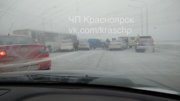 Авария с участием семи автомобилей произошла на Коммунальном мосту в Красноярске
