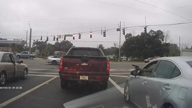 Члены двух преступных групп, занимающихся торговлей наркотиками на территории Флориды, решили выяснить отношения прямо посреди проезжей части, в присутствии многочисленных свидетелей. Регистратор снял на видео скоротечную перестрелку, произошедшую средь бела дня 22 января в Пенсаколе. Местом действия стал перекресток W-стрит и Фейерфилд-драйв, где в тот момент дожидалась зеленого сигнала светофора золотистая Toyota. Неожиданно из подъехавшего справа Lexus раздались выстрелы — на кадрах видно, что вооруженные пистолетами водитель и пассажир открыли огонь, не выходя из салона. Находившийся на переднем сиденье Toyota молодой человек выбрался наружу и укрылся за красным пикапом, а когда нападавшие устремились прочь, начал отстреливаться. Все пули ушили "в молоко", по счастливой случайности никто из свидетелей не пострадал. На следующий день полицейские округа Эскамбиа нашли золотистую легковушку и задержали находившегося в ее салоне 30-летнего Джереми Олдса. Остальных участников перестрелки, которые, по данным полиции, причастны к торговле наркотиками, пока не нашли.