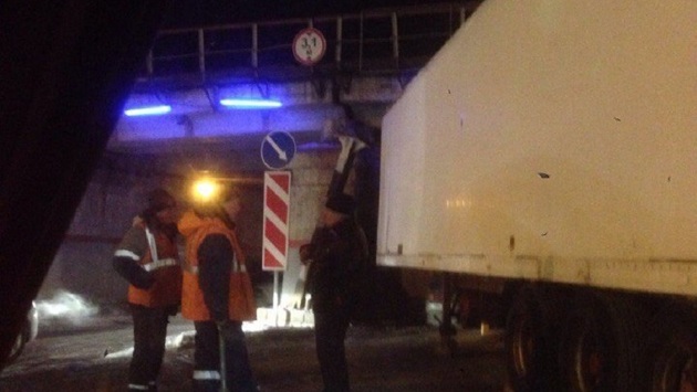 В Пензе под мостом на улице Ерик застряла очередная фура