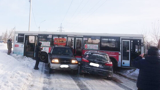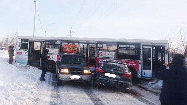 ДТП с участием автобуса, универсала Ford Focus и кроссовера Suzuki Escudo произошло на проспекте Дзержинского днем 29 января между остановкой «Пищевик» и «Золотая горка», рядом с домом №120. Об этом сообщает служба аварийных комиссаров «Альянс». По словам аваркомов, водитель автобуса не справился с управлением в условиях гололеда и выехал на встречную полосу. Там он врезался в Ford, который, в свою очередь, отбросило на Suzuki. В итоге автобус развернуло посреди проезжей части, движение в обе стороны оказалось прерванным. Водителям приходится объезжать место ДТП вне дороги. Согласно «Яндекс.Пробкам», в этом месте в обоих направлениях образовались автомобильные заторы. «Хана народу на остановках. Замерзнут теперь все», — вынес вердикт один из пользователей соцсетей. Судя по опубликованным фото, передняя часть Ford полностью разбита, Suzuki отделался царапинами. О пострадавших ничего не сообщается. В июне прошлого года огромная фура при развороте полностью перекрыла Красный проспект. Водитель неверно оценил габариты своего транспортного средства и зацепил прицепом две припаркованных машины.
