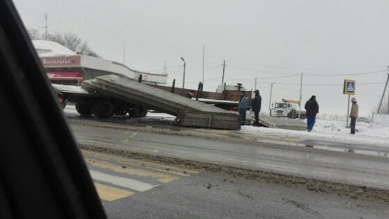 29 января, перед въездом в Таганрог, МАЗ чуть было не устроил крупное ДТП. Он не справился с управление на скользкой дороге, при попытке повернуть машину занесло, и бетонные плиты из его кузова вывалились прямо на дорогу. Очевидцы пишут, что аварии не произошло чудом, к счастью дорога была практически пуста, и автомобили смогли сманеврировать. Пострадавших нет, сильного затора тоже. Вес груза составляет около 25 тонн, для ликвидации аварии придется задействовать спецтехнику.