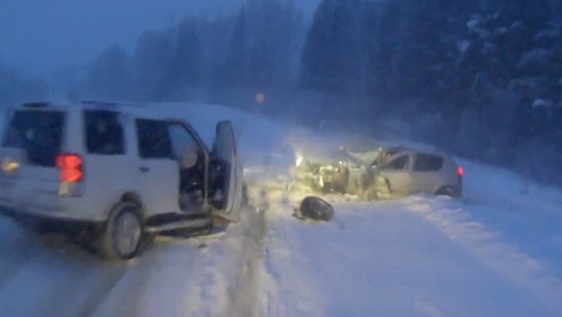 Двойная авария с участием трех автомобилей произошла на днях в Дивеевском районе Нижегородской области. Регистратор запечатлел оба столкновения. Легковой Renault обогнал авто, из которого велась съемка, после чего в него врезался Land Rover, оказавшийся на полосе встречного движения. Водитель грузовика не успел затормозить и протаранил обе столкнувшиеся машины. "Все живы. Я боялся, что из джипа человек выскочит. Но, слава Богу, не вылез", — рассказал мужчина.