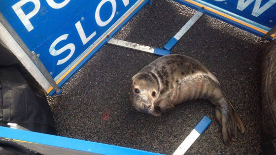 Животное оказалось в километре от берега и пыталось переползти дорогу. Детеныш тюленя выполз на прибрежную дорогу на северо-востоке Шотландии. Жительница графства Абердиншир рассказала, что водители, двигавшиеся по встречной полосе, начали сигналить ей фарами и махать руками, призывая замедлить ход и остановиться. «Я пыталась понять, что происходит, и вдруг увидела что-то на дороге. Я остановилась и поняла, что это детеныш тюленя!», - сказала она в интервью BBC. Женщина перекрыла своим автомобилем место, где находился тюлененок, и включила аварийную сигнализацию. Остановить настойчиво ползущее на середину дороги животное очевидцы пытались ковриком от машины. Прибывшие на место полицейские оградили детеныша и вызвали организацию по защите животных. Ветеринары, осмотрев животное, отметили, что тюленю около 4-5 недель. По всей видимости он попал на берег во время прилива и не успел уйти вместе с отливом. В итоге в поисках воды он прополз почти километр, вот правда не в ту сторону. Из-за движения по твердой поверхности детеныш поцарапал ласты. Сейчас он доставлен в центр спасения диких животных, где ветеринары залечат царапины, а после чего выпустят его в море.