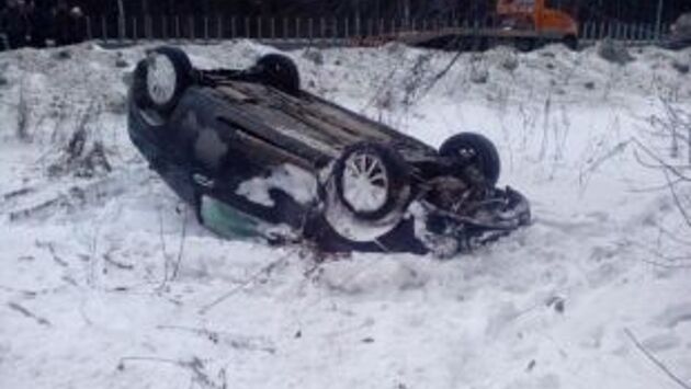 В Перми машина съехала в кювет и опрокинулась