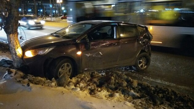 В Самаре иномарка въехала в дерево после столкновения с автобусом