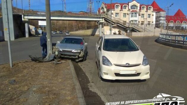 Уходя от столкновения, автомобиль во Владивостоке врезался в столб
