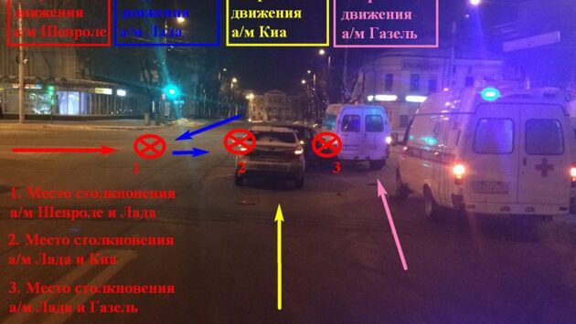 В начале первого часа ночи 15 февраля на пересечении улиц Кирова и Ленина произошло ДТП с участием четырех автомобилей. Фото УГИБДД по Калужской области По предварительным данным УГИБДД по Калужской области, спровоцировал аварию водитель Chevrolet Cruze, ехавший в сторону Московской улицы. Он решил проскочить перекресток на красный сигнал светофора и врезался в Lada Granta, ехавшую по улице Ленина в сторону улицы Суворова. Отечественную легковушку отбросило на встречные Kia Rio и «Газель». Пострадали два пассажира Lada Granta. Одному из них 37 лет, другому – 29.Оба с травмами разной степени тяжести были доставлены в Калужскую областную больницу.