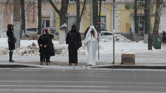 16 февраля нижегородская Госавтоинспекция организовала акцию «Мобильный мемориал». В рамках события на 4 самых аварийных точках города — круговом движении в районе «Пролетарской», на Мызе, на перекрестке проспекта Гагарина с Медицинской — появились эвакуаторы сбитыми автомобилями. Наиболее зрелищно акция проходила в районе дома № 108 по проспекту Гагарина, сообщили в УГИБДД по Нижегородской области. Там по итогам 2017 года зарегистрировано 11 ДТП с пострадавшими, а в минувшие выходные погибла девушка-пешеход. Здесь к «Мобильному мемориалу» присоединились активисты НРОО «Дорожный контроль 52». Волонтеры помимо самодельных плакатов-обращений молодые люди изготовили карнавальные костюмы «смерти», которыми привлекали дополнительное внимание нижегородцев. — Цель акции — не напугать автомобилистов и пешеходов, а проинформировать население о том, что те или иные участки дорог наиболее опасны, — рассказал начальник отдела пропаганды БДД УГИБДД ГУ МВД России по Нижегородской области полковник полиции Игорь Михайлушкин. Акция является своеобразным продолжением советских традиций, когда искореженные в авариях автомобили устанавливались в местах трагедий в качестве горьких напоминаний о последствиях нарушений ПДД. Ранее мы публиковали карту самых аварийных мест города.