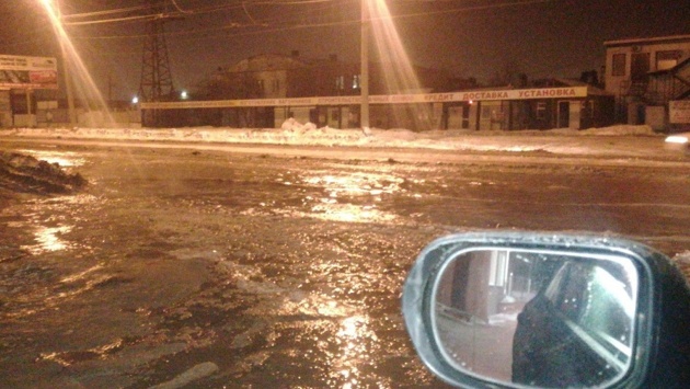 «Вся дорога полностью в воде»: на Заводском шоссе прорвало трубу с водоснабжением
