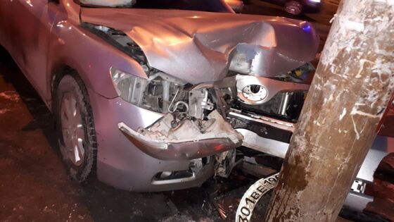 На Шефской Hyundai улетел в столб после столкновения со встречной Toyota