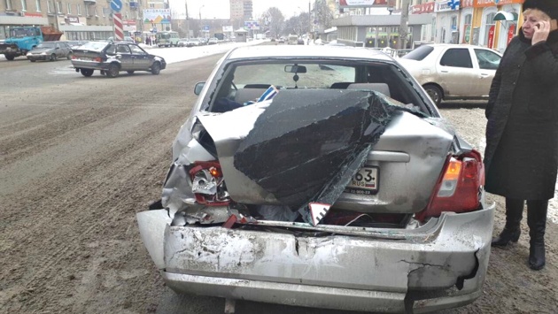 В понедельник, 19 февраля, в Самаре произошло ДТП с участием общественного транспорта. На пересечении улиц Гагарина и Запорожской столкнулись автобус №226 и иномарка. Об этом очевидцы сообщили в группе «ДТП Самара». Виновник аварии практически не пострадал — Автобус понесло по снегу. Водитель не справился с управлением и «догнал» Hyundai Accent. Знак «Шипы» не помог, — сообщили очевидцы. Женщину авария довела до слез По словам свидетелей ДТП, за рулем находилась женщина. Пострадавших в аварии нет. На место происшествия выехали сотрудники ГИБДД.