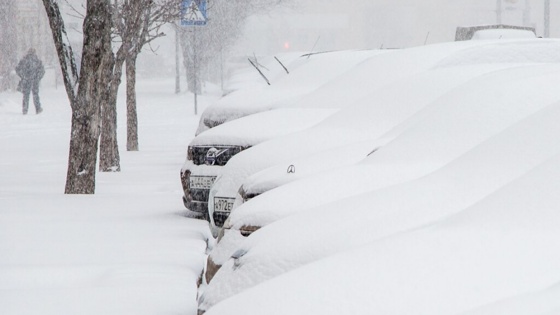 В Волгограде снежная лавина покорежила иномарку