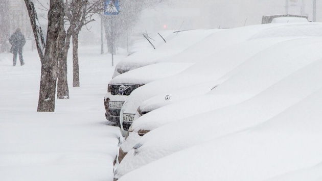 В Волгограде снежная лавина покорежила иномарку