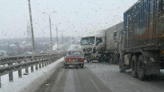 На Третьей Продольной Волгограда заскользившая фура перекрыла дорогу