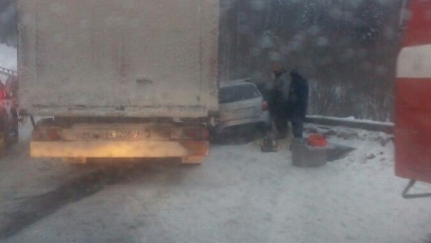 В огромную пробку попали сегодня водители на М-8. Затруднила движение авария. По словам очевидцев, перед Брин-Наволоком в Холмогорском районе в фуру въехала машина. Сейчас проезд возможен только для легковых автомобилей. — Авария на 130-м километре М-8, на мосту, километровая пробка с двух сторон. Сотрудники МЧС работают на месте, полиция приехала, — рассказал один из очевидцев Матвей Чертков.