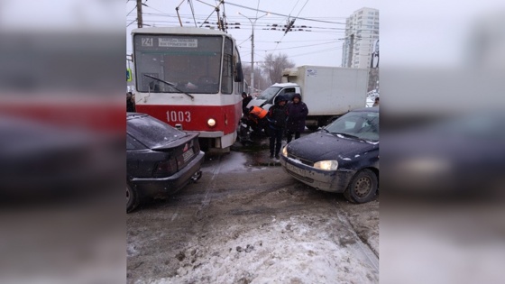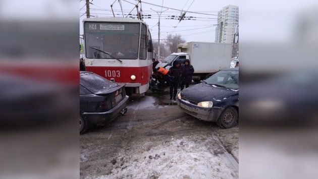Днем в понедельник, 26 февраля, в Самаре произошло ДТП с участием общественного транспорта. На пересечении улиц Стара-Загора и Ташкентской столкнулись «Газель» и трамвай. Об этом сообщили очевидцы. По информации свидетелей произошедшего, трамвай проезжал перекресток на зеленый сигнал светофора. В это время «Газель» двигалась по улице Стара-Загора и врезалась в него. — Минус «Газель», а на трамвайчике только царапки, — комментируют самарцы. — Из-за ДТП на время остановилось движение трамваев на улице Ташкентской.