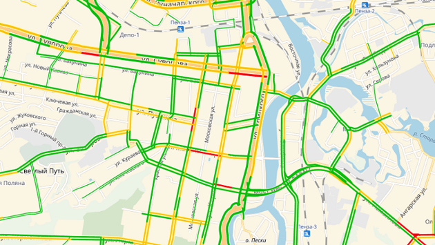 По данным сервиса Яндекс.Карты, утром в отдельных районах Пензы серьезно затруднено дорожное движение. В центре города затор образовался на улице Пушкина при движении в сторону центра города. Пробка начинается от пересечения с улицей Кулакова. Также испытывают трудности автомобилисты на пересечении улицы Суворова и Толстовского путепровода. Небольшая пробка образовалась на улице Володарского при движении в сторону улицы Максима Горького. По возможности ищите пути объезда. Стоят в пробке автомобилисты на улице Максима Горького в направлении набережной – средняя скорость движения на этом участке составляет 7 км/ч. Километровая пробка образовалась на улице Терновского в сторону центра. Затор начинается от пересечения с Ростовской улицей, а средняя скорость движения не превышает 7 км/ч. Также испытывают трудности автомобилисты и на прилегающей Сухумской улице. Не удастся быстро проехать по улице Гагарина в сторону выезда из города. Пробка начинается от пересечения с проездом Байдукова, а средняя скорость движения составляет 7 км/ч.